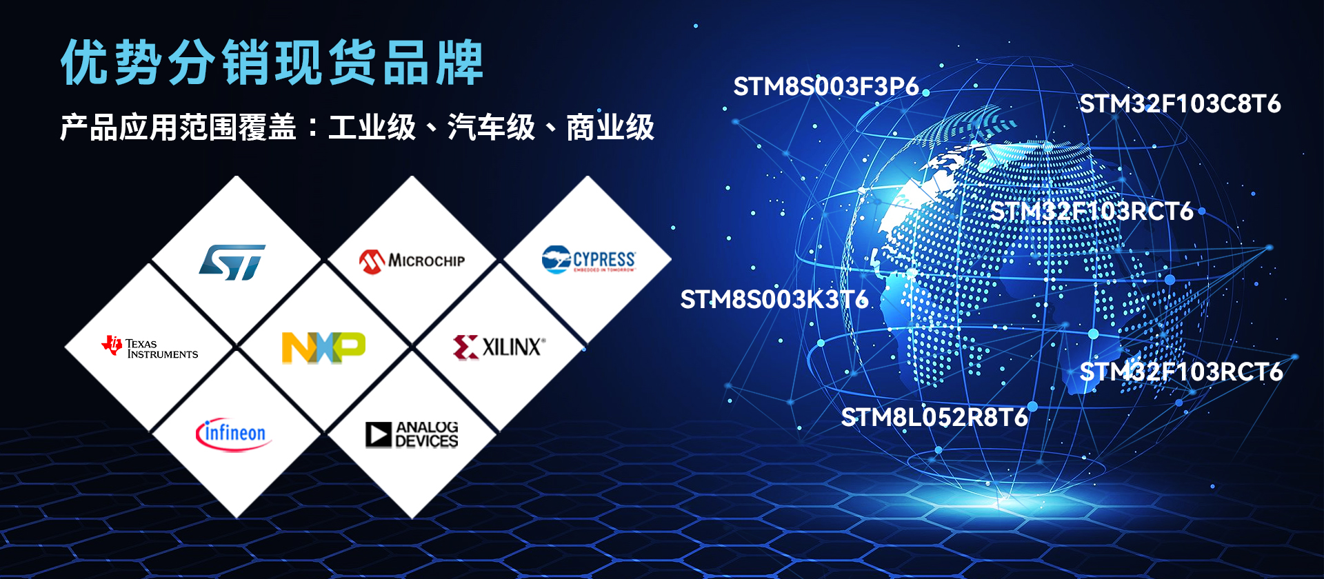 分銷各類主動元件(IC集成電路,存儲芯片,光電器件、二、三極管等)和被動元件(電容、電阻、電感等)及機電元件(連接器、開關器件)等。 分銷品牌有臺灣品牌,臺灣光寶/億光/ CT兆龍/奧倫德/ MATELIGHT/ MATEON /ST/TI/長電/山東晶導微/先科/創基/楊杰/NXP等品牌。